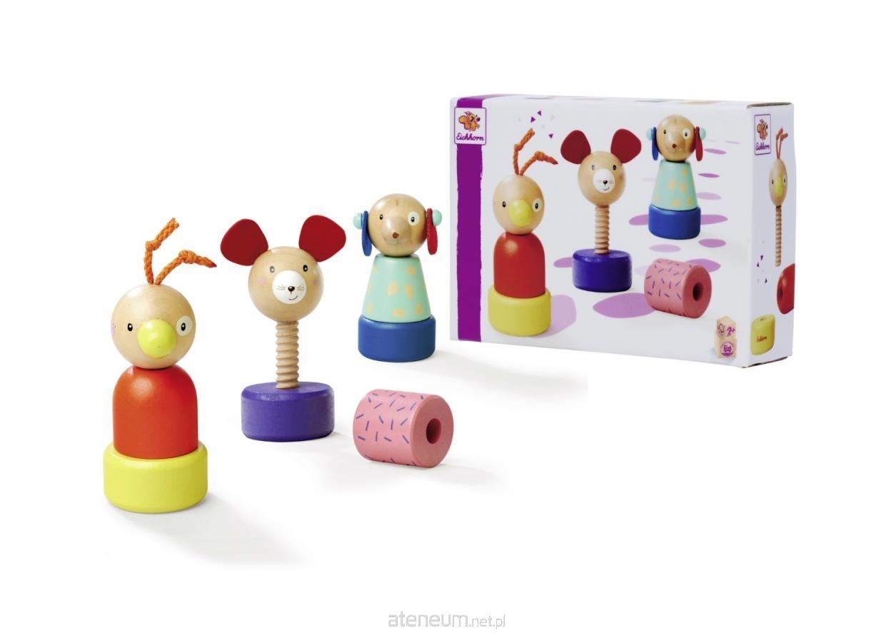 Wzory: pies, kaczka, mysz, 9 elementów, 13 cm, FSC® 100%, drewno brzozowe, filc, nylon, 2l+