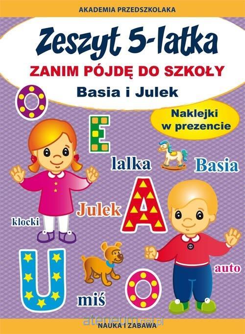 Doskonałe połączenie nauki i zabawy dla pięciolatków - dzieci rozwiązują różnorodne zadania edukacyjne, kolorują obrazki i wklejają naklejki we właściwe miejsca. Dodatkowe atuty tej książki to duże, wyraźne ilustracje z grubymi konturami i tematyka związana z edukacją przedszkolną. Polecamy również książkę "Zeszyt 5-latka. Matematyka. Basia i Julek".