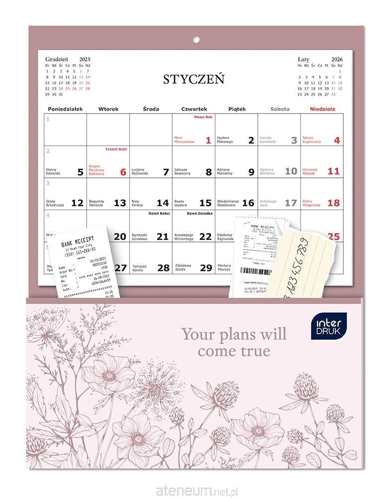 Kalendarz 2026 Trójdzielny Twarda Główka Bukiet