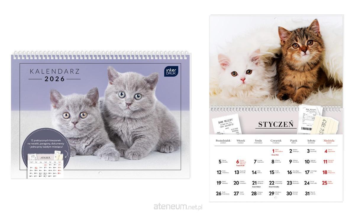 Kalendarz 2026 z kieszonką 25x17,5cm Zwierzaki