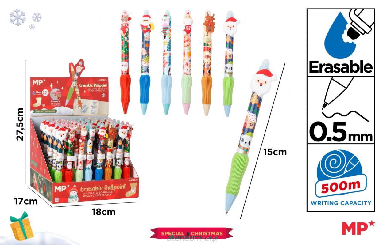 Zestaw wymazywalnych długopisów, korpus ABS, końcówka 0,5 mm, niebieski tusz.