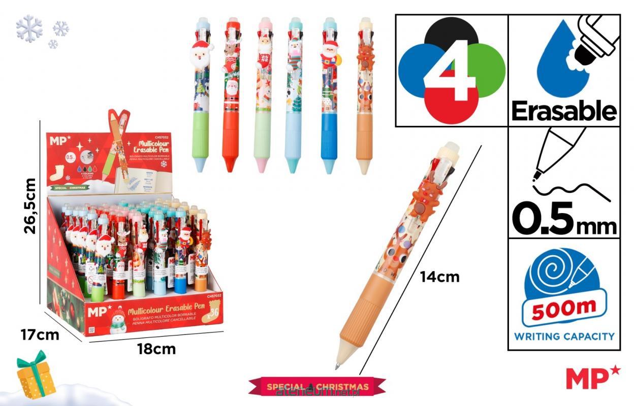 4-kolorowy długopis wymazywalny: czarny, niebieski, zielony i czerwony tusz.