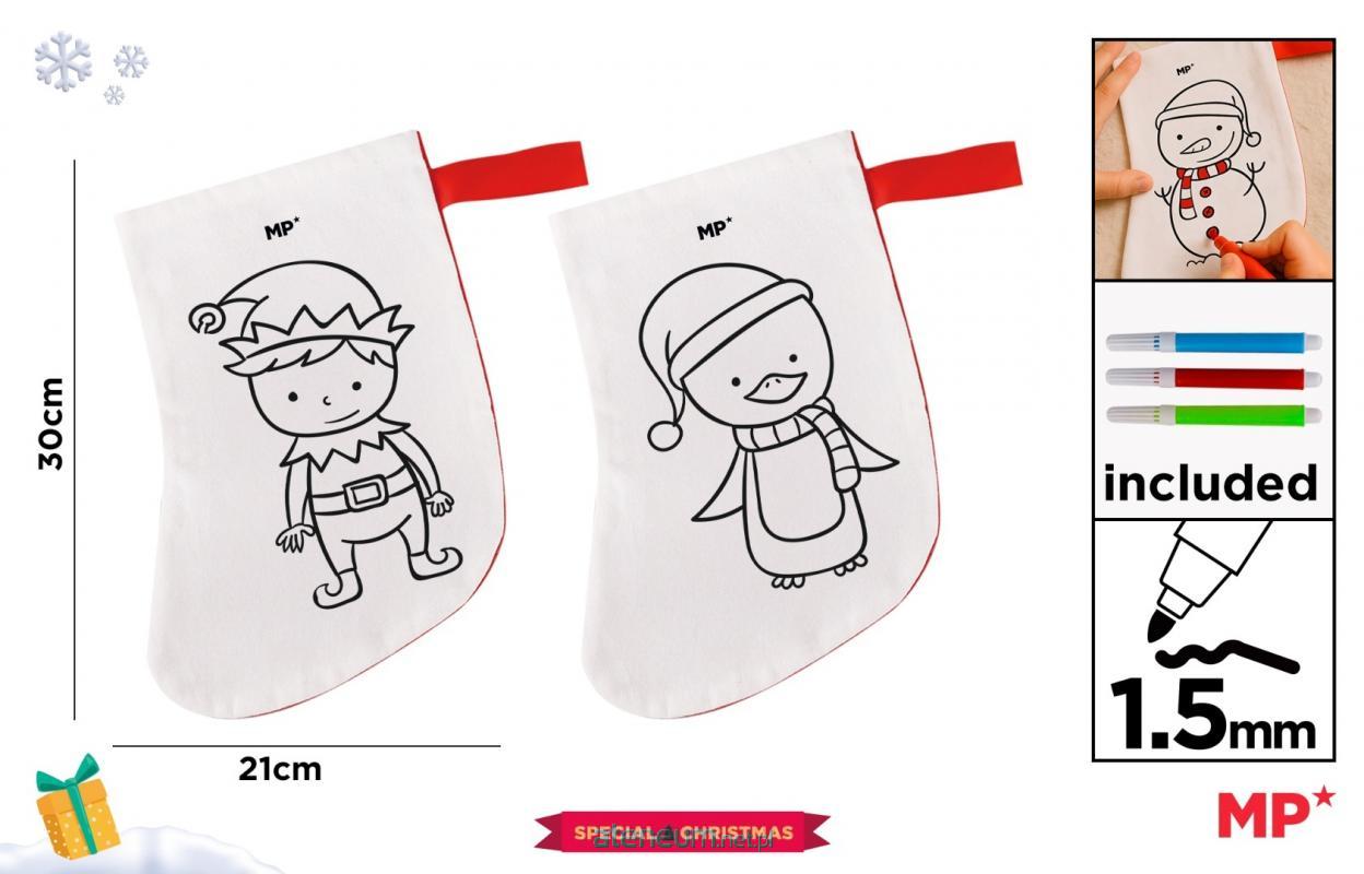 Skarpeta BN do malowania + flamastry elf / pingwin