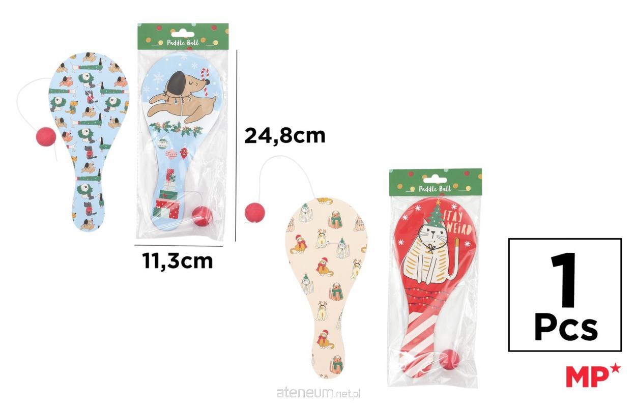 Paletki do ping ponga z przymocowaną na gumce gumową piłeczką. 2 świąteczne wzory: PIESEK / KOTEK