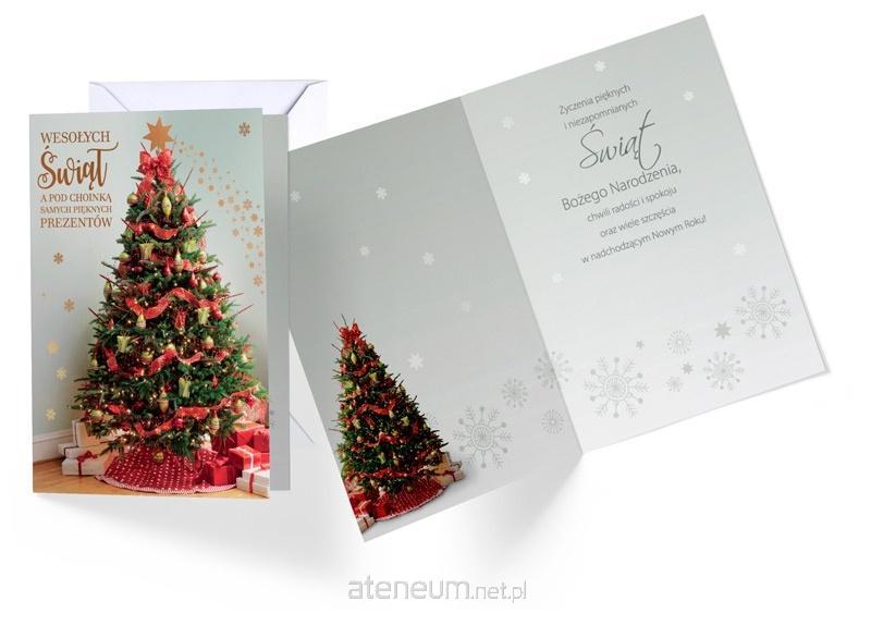 Kartka wielkości B6, zdobiona w zależności od wzoru metaliczną folią lub brokatem. Każda kartka posiada kolorowe życzenia w środku i koperte.
