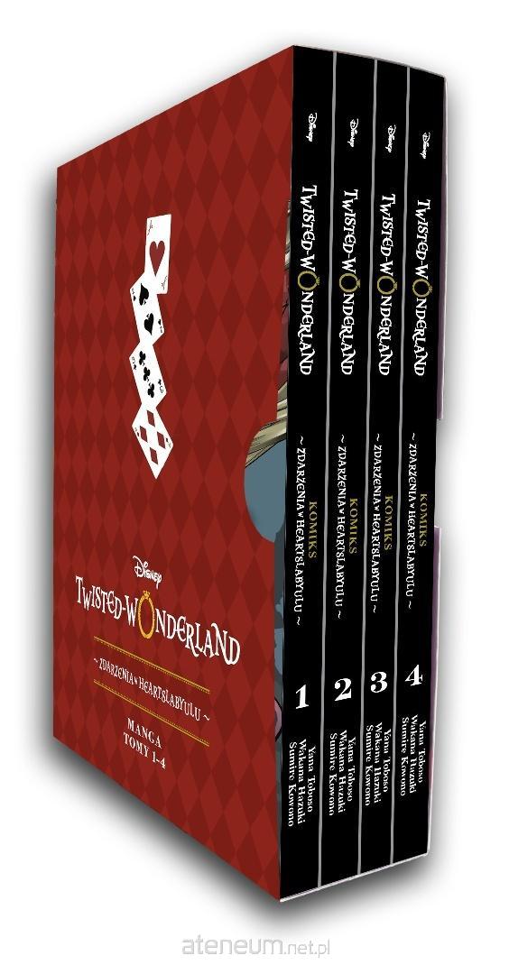 Pakiet z 4 tomami mangi czytanej od prawej do lewej o niezwykłych przygodach nastolatka w magicznym świecie o nazwie Twisted Wonderland. Komiksowa wersja niezmiernie popularnej gry mobilnej "Disney Twisted-Wonderland", stworzona przez ludzi, którzy przygotowali tę grę. Licealista Yu zostaje przyjęty do przedziwnej szkoły magii - Night Raven College i mianowany przewodniczącym jednego z dormitoriów. Poznaje nowych kolegów i mierzy się z wieloma zaskakującymi wyzwaniami.