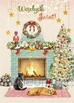 Karnet otwierany w formacie B6, pionowy, złocony, koperta w zestawie