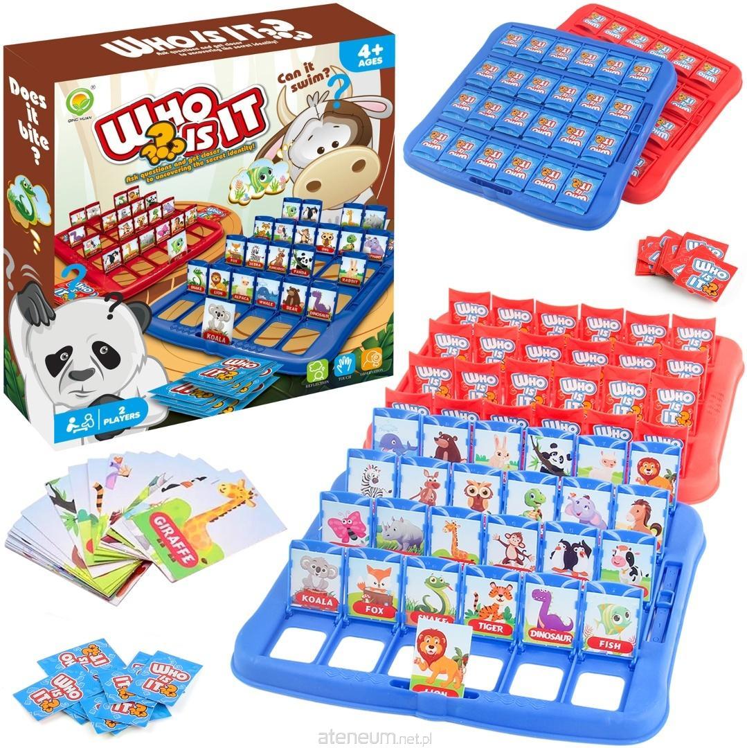 Zasady Gry: Każdy z graczy wybiera jedną kartę zwierzęcia, którą trzyma w tajemnicy. Następnie gracze na zmianę zadają sobie pytania, na które można odpowiedzieć tylko "Tak" lub "Nie" (np. "Czy twoje zwierzę ma rogi?", "Czy potrafi pływać?"). Na podstawie odpowiedzi, gracze zamykają klapki z wykluczonymi zwierzętami.