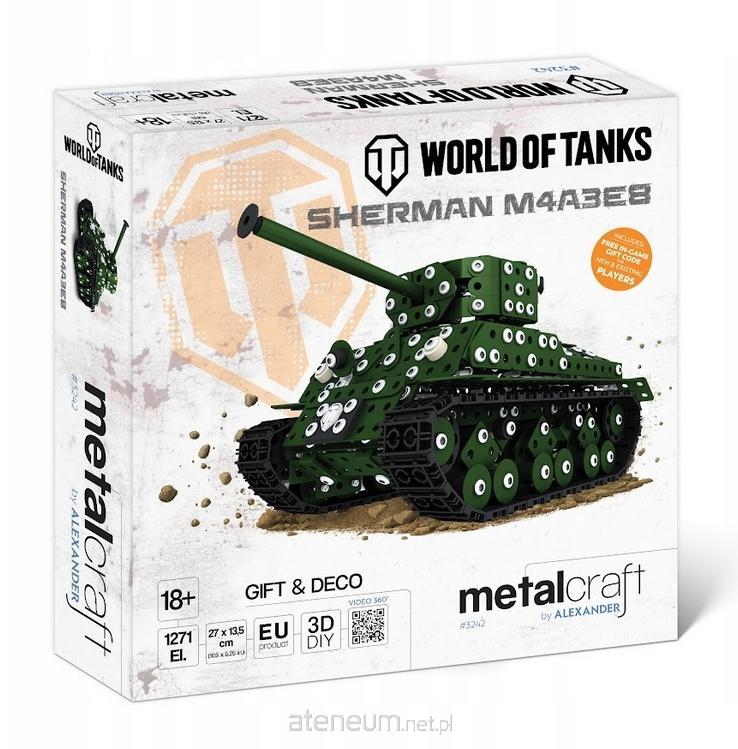 Spektakularny metalowy model czołgu SHERMAN M4A3E8 do samodzielnego złożenia to efektowna dekoracja dla każdego miłośnika gry WORLD OF TANKS. Rękodzieło złożone z ponad 1000 metalowych blaszek i śrubek, które już wkrótce może zdobić twoją półkę, komodę, biurko czy gablotę.