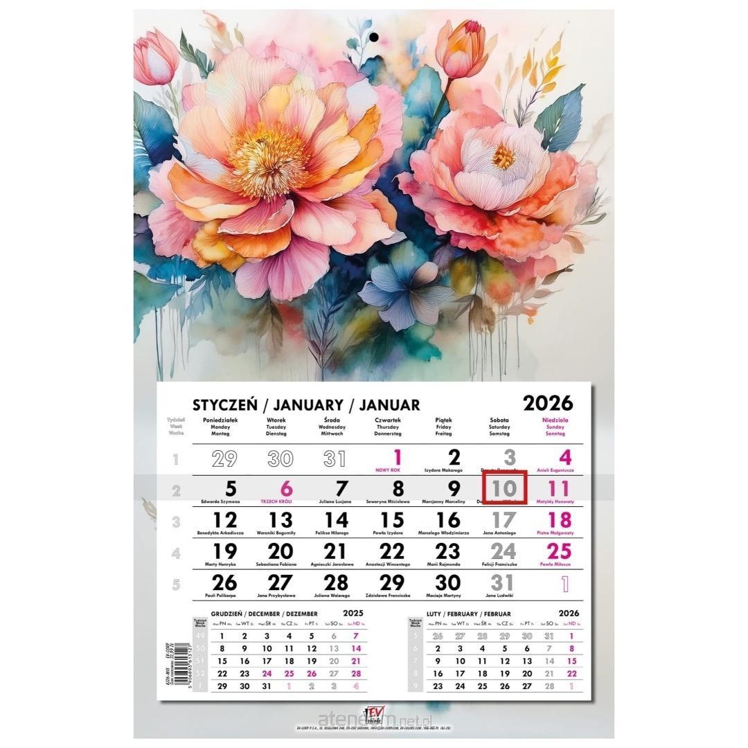 Kalendarz 2026 jednodzielny główka płaska Kwiaty