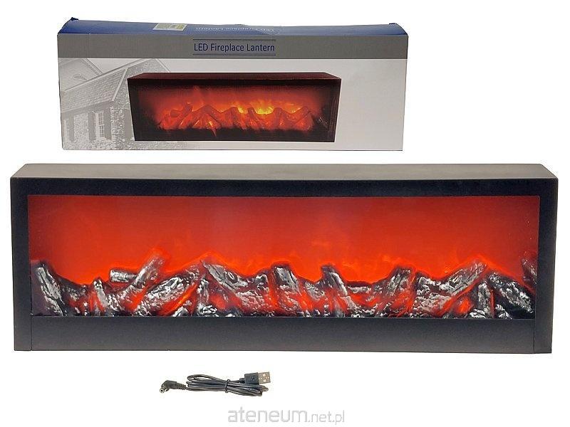 lampka kominek, światła LED, kabel USB; 60x10x19,7cm
