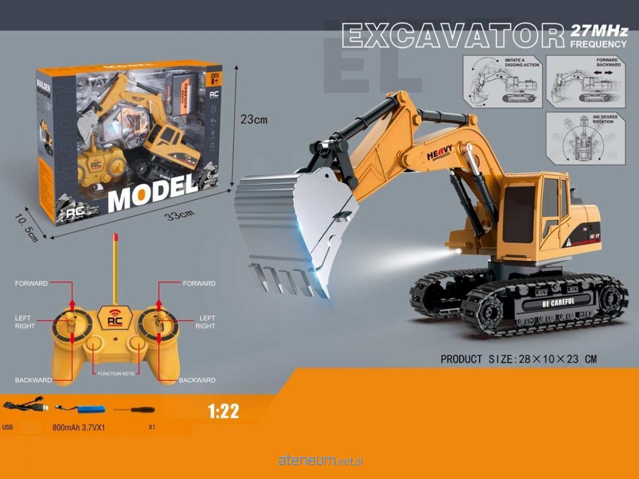 Koparka R/C 27MHz światło dźwięk sterowanie łyżką koparki, obrót 360 stopni ładowanie USB 28x10x23cm