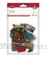 drzwi 66x100mm, miotła 100mm, drabina 20x60mm, okno 31x46mm, wycieraczka 35x54mm, wianek 75mm, choinki 25x48/28x65mm, lampa naftowa 37x55mm, para kaloszy 11x31x25mm