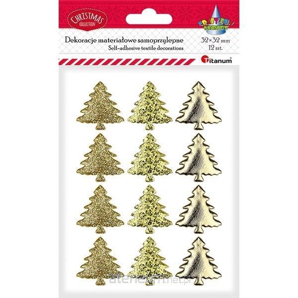 Dekoracje samoprzylepne materiałowe choinki PU 32x32mm 3 wzory: drobny brokat, duży brokat, gładkie złote 12szt.