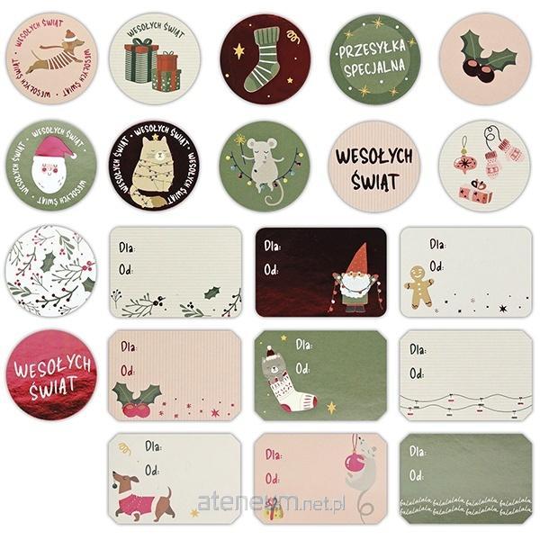 Naklejki papierowe okrągłe O28mm, etykiety prezentowe 41x28mm 21szt.