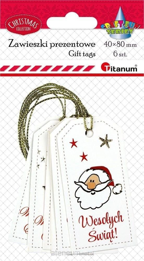 Zawieszki prezentowe z napisem Wesołych Świąt 40x80mm 3 wzory: gwiazdka, głowa Mikołaja, choinka, dwustronny zadruk z miejscem do wypełnienia 6szt.