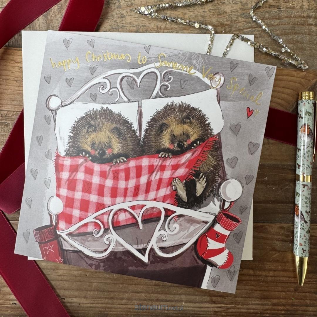 Karnet bez tekstu wewnątrz, w zestawie z białą kopertą. Wymiary 160 x 160 mm. Wyprodukowany w Wielkiej Brytanii.