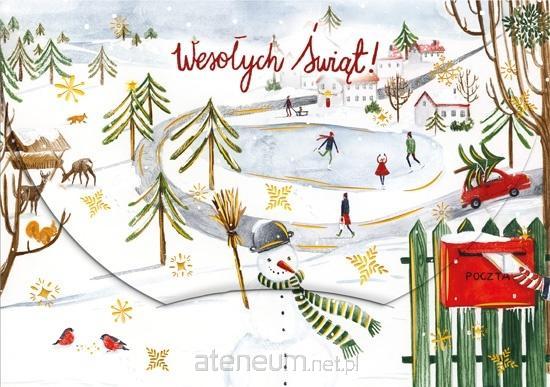 Karnet świąteczny poziomy, składany na kształt koperty w formacie B6, złocony z kopertą ochronną w zestawie.