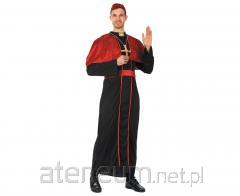 Elegancka i efektowna czapka mitra w klasycznym czerwonym kolorze, usztywniana i zdobiona złotymi taśmami, które podkreślają jej wyjątkowy charakter. Jej obwód wynosi około 58-60 cm, co sprawia, że pasuje na większość głów.
