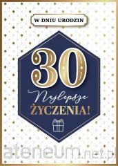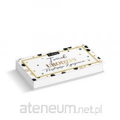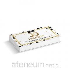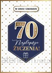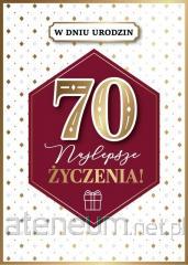 Karnet Konfetti formatu B6, z elementami złocenia lub srebrzenia. Front ozdobione w złote gwiazdki konfetti, które urozmaicają kartkę. Idealny wybór na wyjątkowe urodziny.