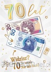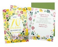 Karnet Konfetti formatu B6, z elementami złocenia lub srebrzenia. Front ozdobione w złote gwiazdki konfetti, które urozmaicają kartkę. Idealny wybór na wyjątkowe urodziny.