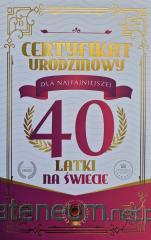 Karnet Certyfikat Urodzinowy 40 urodziny damskie