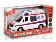 Zabawkowa karetka pogotowia zachęci malucha do zabawy w odgrywanie ról, pomagając mu przy tym w rozwijaniu wyobraźni! Ten realistycznie wyglądający pojazd wyposażony został w funkcje, upodabniające go do pełnowymiarowego ambulansu. Poza ręcznie otwieranymi tylnymi i bocznymi drzwiami, znajdziemy tu w zestawie rozkładane nosze. Pojazd posiada na dachu przyciski, aktywujące realistyczne odgłosy i światełka. Jakby tego było mało, karetka potrafi sama jechać do przodu! Wystarczy, że rozpędzisz jej koła, poprzez tarcie nimi o podłoże i postawisz ją na podłodze, a pojedzie przed siebie.