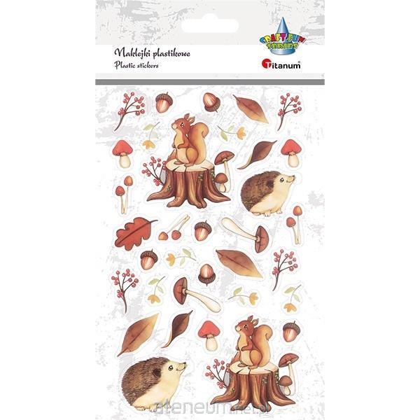 Naklejki foliowe wiewiórki, jeże, żołędzie, grzyby, jarzębina mix 34szt.
