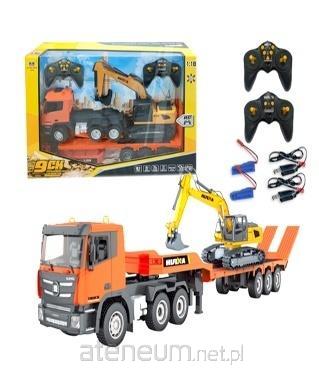 - baterie: 2 x akumulator 3,7V (ciężarówka i koparka) dołączone, 4 x AA 1,5V (piloty) niedołączone
