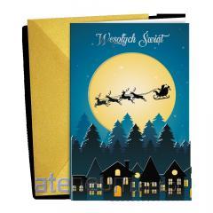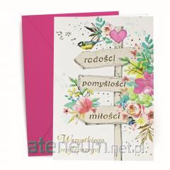 Kartka z życzeniami z dopasowaną kolorystycznie kopertą. Ozdobę stanowią cekiny, złocenie i elementy 3D. Całość zabezpieczona folią typu"open".d