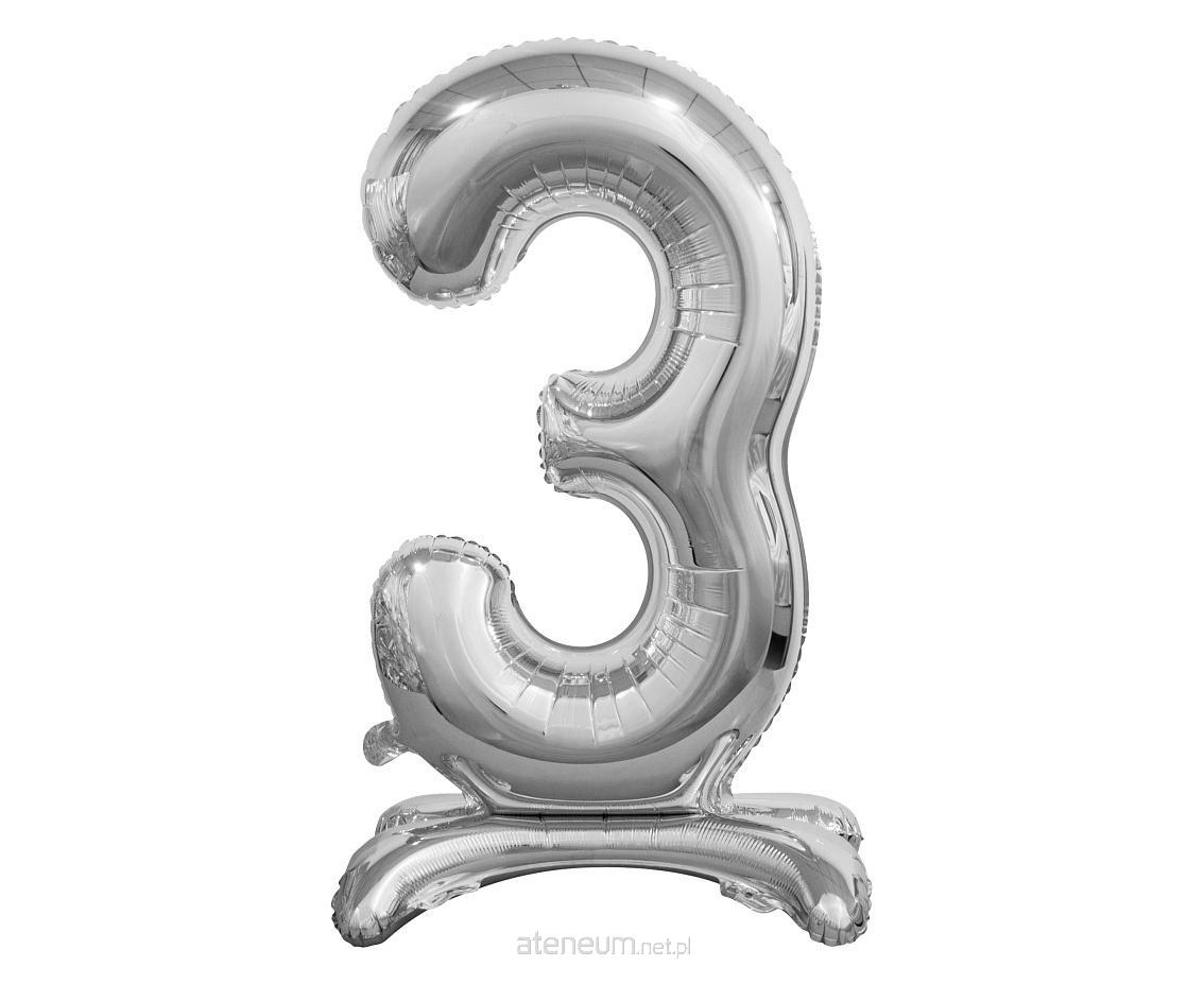 BALON FOLIOWY STOJĄCY CYFRA 3, SREBRNA