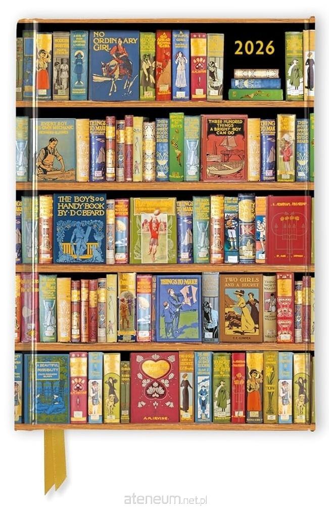 Terminarz kieszonkowy na rok2026, zatytułowany Bodleian Libraries: Bookshelves2026 Luxury Pocket Diary Planner - Week to View, wydany przez wydawnictwo Flame Tree Publishing. Motywem przewodnim jest arsenał klasycznych i rzadkich woluminów zgromadzonych w bibliotece Bodleian Libraries - grafika okładkowa inspirowana regałami tej legendarnej instytucji nadaje terminarzowi elegancki, artystyczny charakter. Każdy tydzień przedstawiono w układzie weektoview - jedna strona cotygodniowego kalendarium, na przeciwległej stronie linie do notatek - dzięki czemu terminarz łączy funkcję organizacyjną z możliwością swobodnych wpisów.