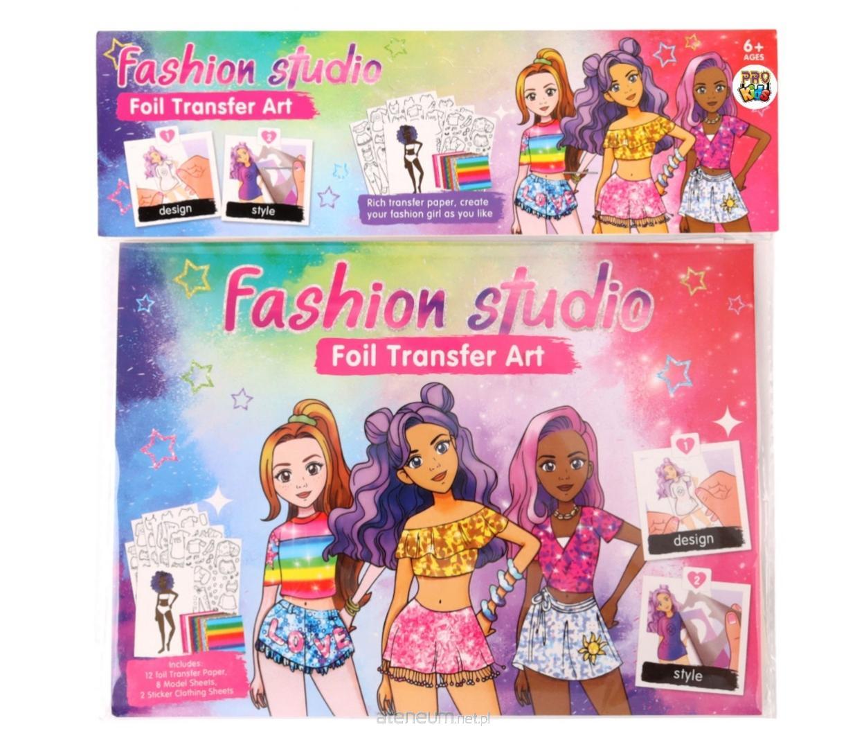 Zawartość zestawu: 12 arkuszy folii transferowych w różnych kolorach, 8 arkuszy z modelkami do projektowania, 2 arkusze z nadrukami ubrań i dodatków, instrukcja