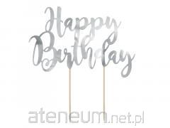 Topper na tort Happy Birthday srebrny 22,5cm