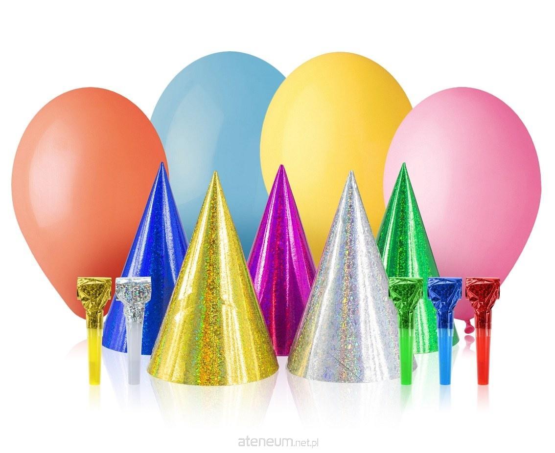 ZESTAW "BAL NA 10 UŚMIECHÓW"Zestaw zawiera: 10 kolorowych balonów,10 holograficznych czapeczek i 10 holograficznych trąbek.