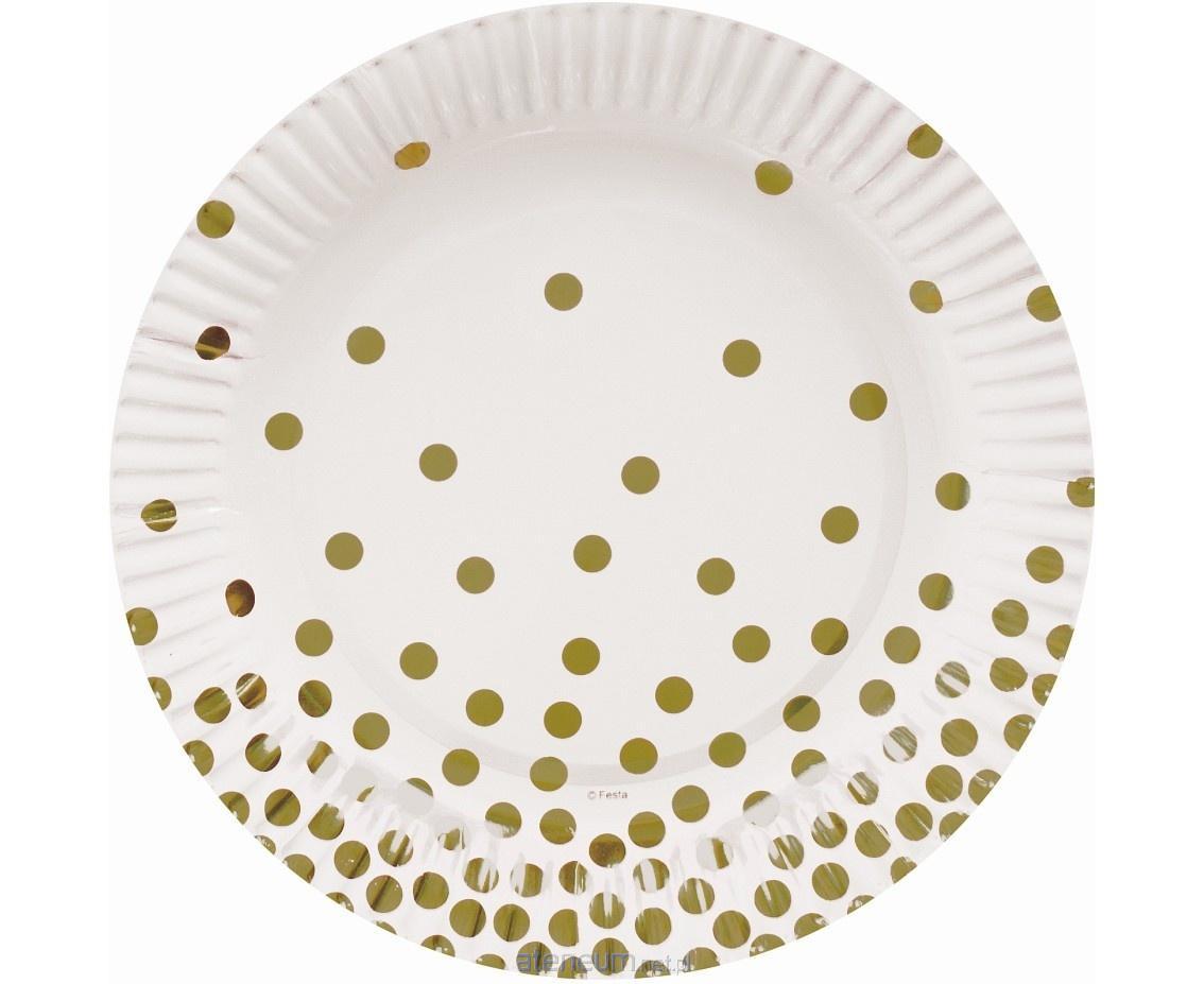 PAPIEROWE TALERZYKI ZŁOTE GROSZKI, BIAŁE