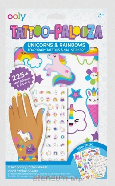 Wesołe i kolorowe tatuaże oraz naklejki na paznokcie z tęczowymi jednorożcami to prawdziwa dawka magii dla każdej małej modnisi! Zestaw Tattoo Palooza Tęczowe Jednorożce to idealny wybór na urodzinowe przyjęcia, wspólne zabawy z przyjaciółmi i wszystkie wyjątkowe okazje. W środku znajdziesz ponad 225 bajecznych tatuaży i naklejek, które są niezwykle łatwe w aplikacji, wystarczy przykleić, przycisnąć i gotowe! Urocze wzory jednorożców, tęczy i pastelowych motywów sprawią, że każda stylizacja nabierze magicznego blasku. Produkt został przetestowany dermatologicznie, jest nietoksyczny i bezpieczny dla dzieci od trzeciego roku życia.