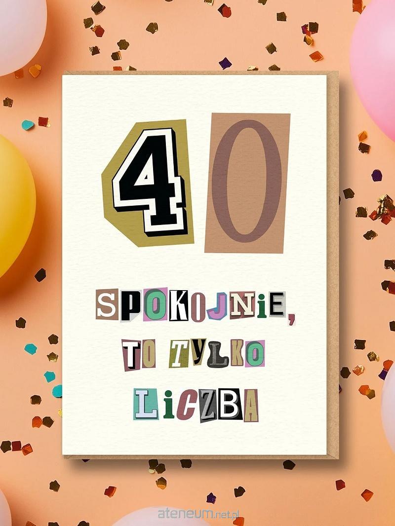 Kartka urodzinowa SPOKOJNIE, TO TYLKO LICZBA / 40 to świetny prezent na 40. urodziny dla przyjaciółki, siostry, brata lub znajomego z dystansem do życia. Idealna jako dodatek do prezentu lub wysłana solo z ciepłymi życzeniami. Zabawna, lekka i uniwersalna - kartka, która wywoła uśmiech niezależnie od liczby świeczek na torcie.