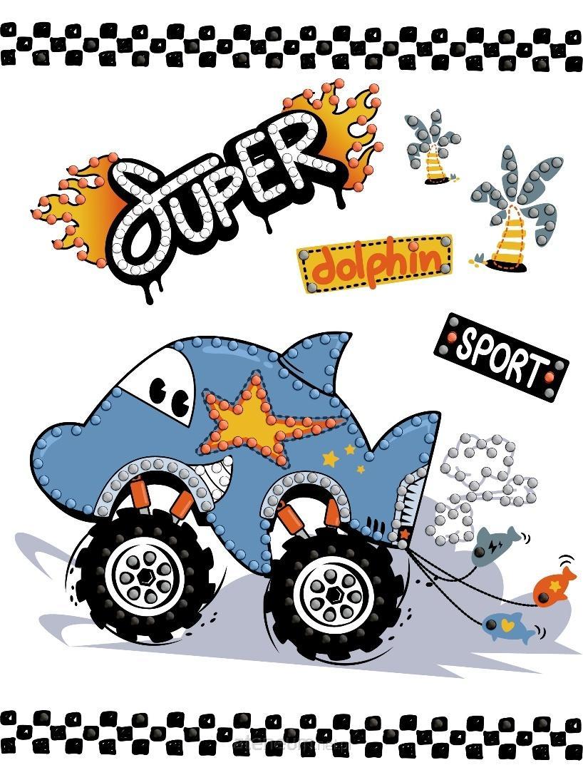 Diamentowa mozaika - Samochód delfin 15x20cm