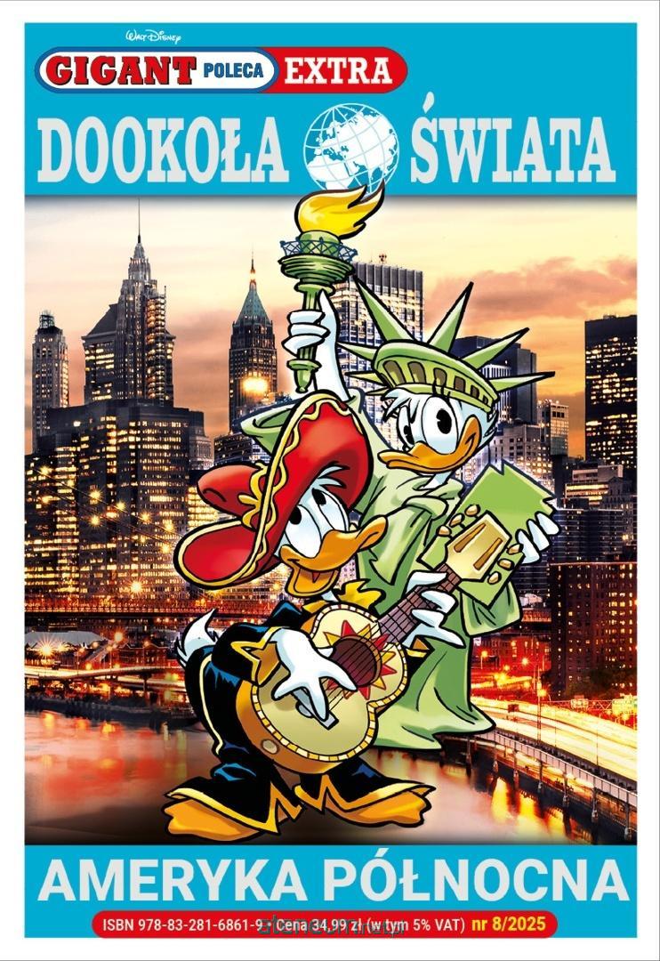 Myszka Miki, Kaczor Donald i ich przyjaciele odkrywają Amerykę Północną! Podczas swoich podróży przeżywają fascynujące przygody. Odkrywają tętniące życiem miasta oraz dziewicze krajobrazy od Pecos Town na Dzikim Zachodzie, przez Las Megas aż po "Wielkie Jabłko". Sknerus McKwacz wyrusza nawet śladami swojej młodości do Klondike, a Indiana Goofs poszukuje tajemniczej Wielkiej Stopy. Nowy tom podróżniczy w amerykańskim stylu poleca się na listopad!