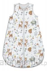 Śpiworek został wykonany z miękkiej tkaniny, przyjaznej dla skóry dziecka, dzięki czemu zapewnia optymalną temperaturę i zapobiega przegrzaniu malucha podczas snu. Dodatkowe obszycie zakończenia zamka przy szyi chroni delikatną skórę dziecka podczas użytkowania.