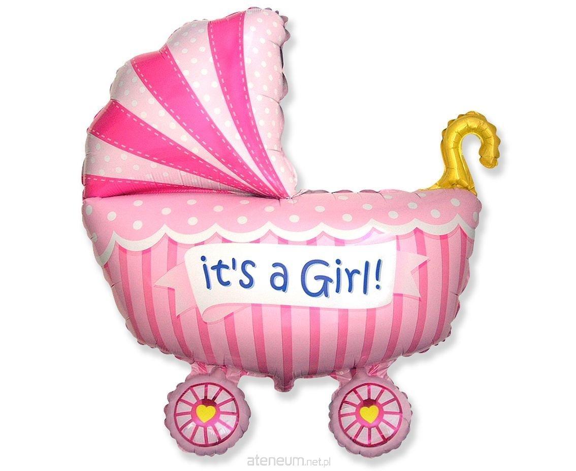 BALON FOLIOWY WÓZEK DLA DZIEWCZYNKI