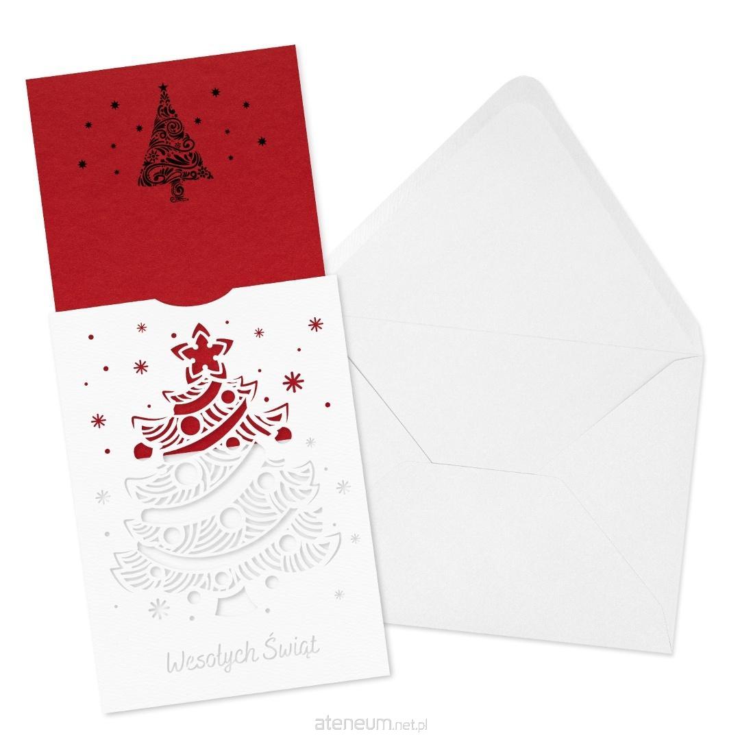 Kartka składka się z ażurowej białej koszulki (okładki) oraz wkładki z czerwonego, barwionego w masie papieru na wpisanie własnoręcznych życzeń.