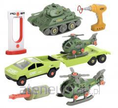 Samochód do montażu z przyczepą i helikopterem