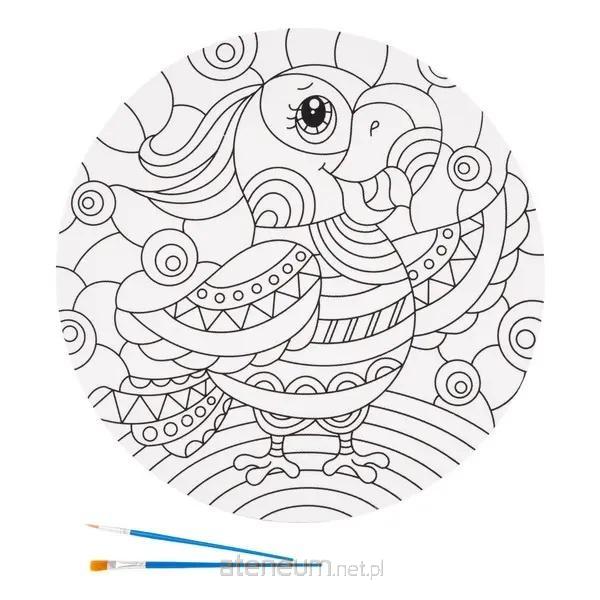 Oryginalna kolorowanka, którą można pokolorować według własnej fantazji i stworzyć w ten sposób niepowtarzalną dekorację do pokoju, średnica 39,5 cm, w zestawie znajdują się 2 pędzle