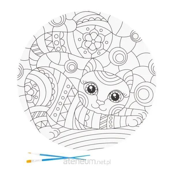 Oryginalna kolorowanka, którą można pokolorować według własnej fantazji i stworzyć w ten sposób niepowtarzalną dekorację do pokoju, średnica 39,5 cm, w zestawie znajdują się 2 pędzle