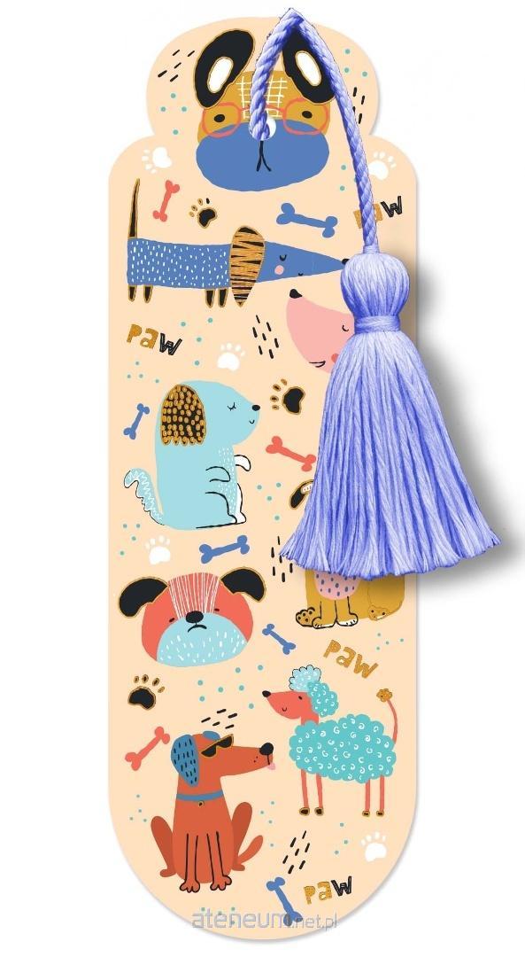 Złocona zakładka wykonana z grubego kartonu ozdobiona kolorowym chwostem.