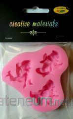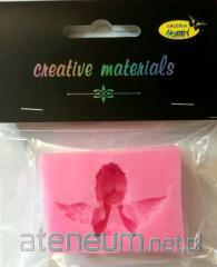 Forma silikonowa wielkości 15,5 cm x 6,5 cm do odlewów z gipsu, mas plastycznych, plasteliny, modeliny, mas cukierniczych itp.Z formy jest możliwość odlania lub stworzenia 3 Elementów - 2 w kształcie aniołka ( cherubinka ) i jednego w kształcie serca z ornamentem.