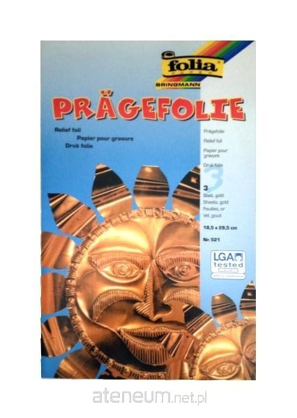 Folia metaliczna twarda, 18,5x29 cm - specjalna gruba folia aluminiowa barwiona w metaliczne kolory grubości wynoszącej 70 mikronów do tłoczeń i wykonywania tłoczonych płaskorzeźb, w teczkach złota a 3 ark