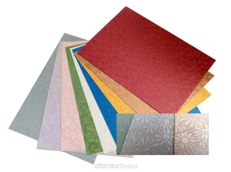 Karton kreatywny o fakturze 'Stokrotki' dostępny w formacie 25x35 cm. Opakowanie zawiera miks 10 arkuszy w różnych kolorach